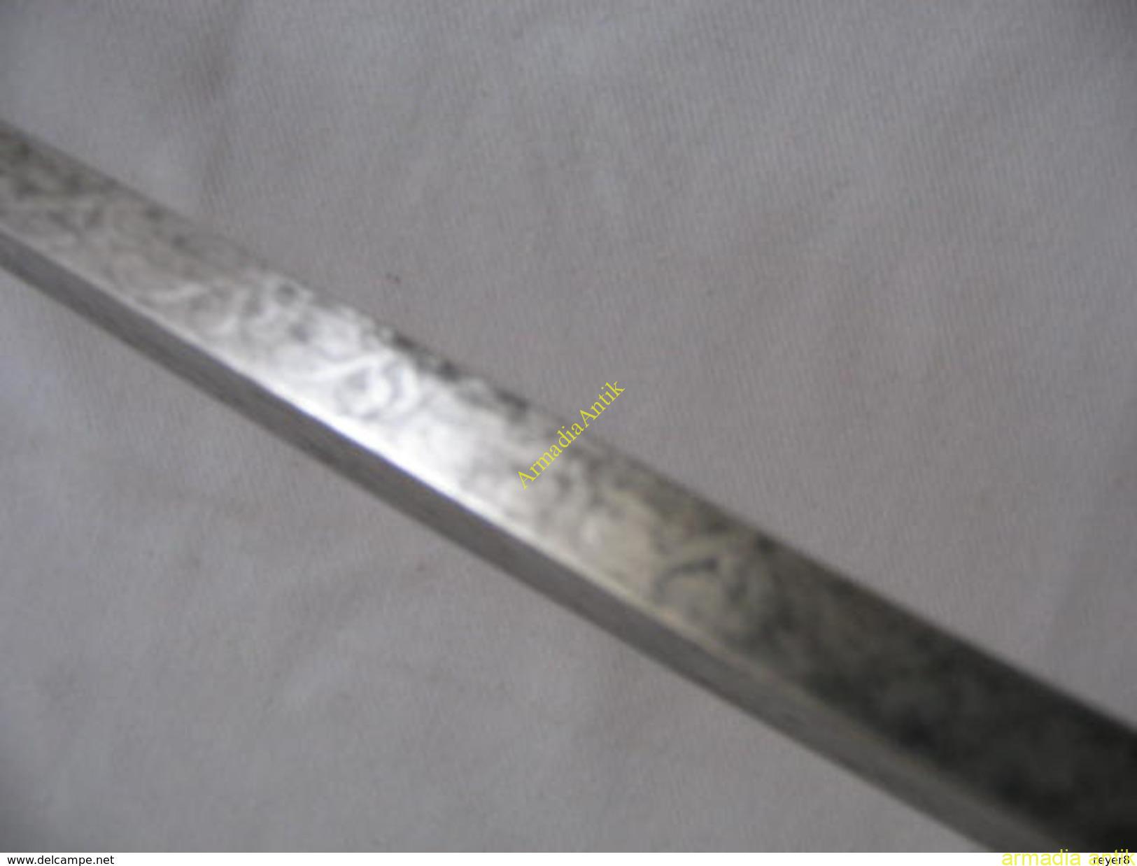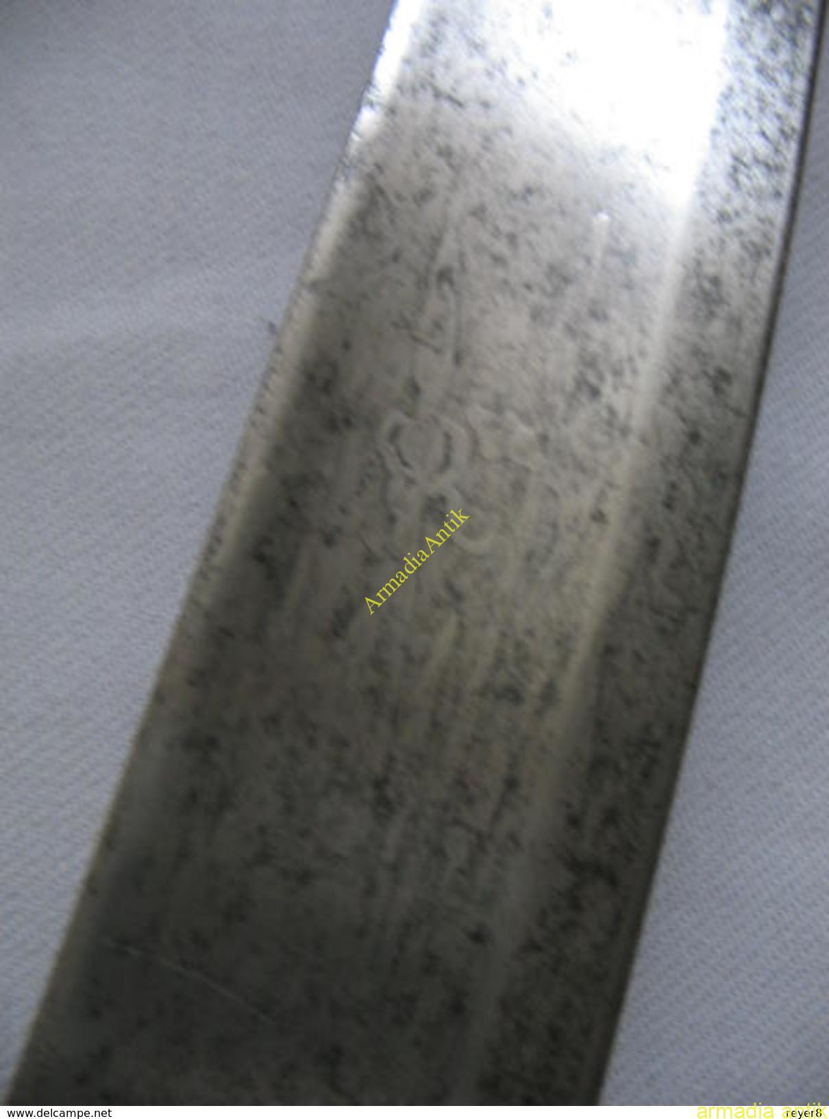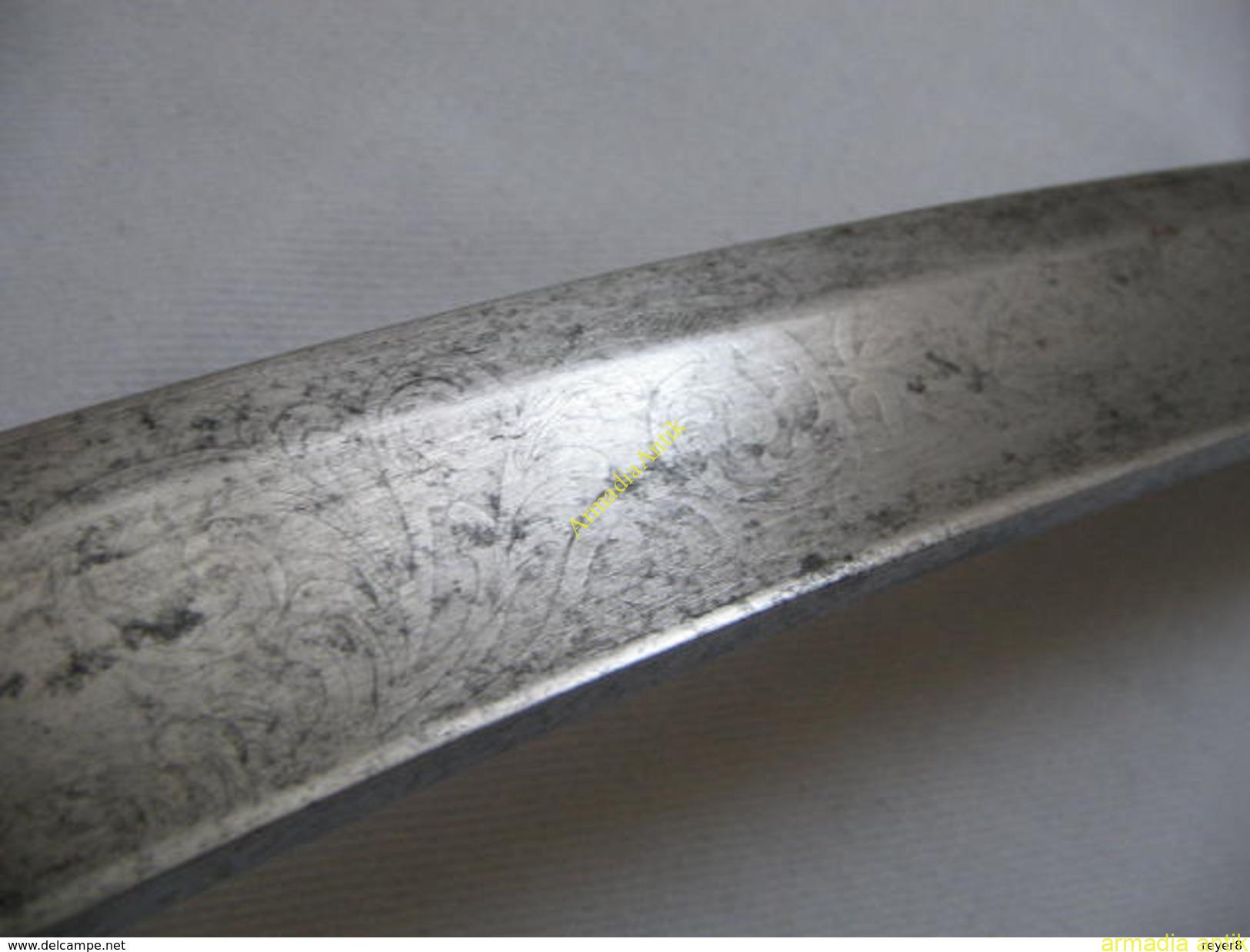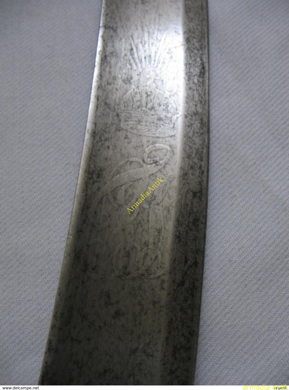 A szablya pengéje savmaratott, utáncizellált, haditrófeás díszítésű. A korona alatt FJ 1monogarmmal. A penge nagyon ritka, (1)833 FICHER gyártóbélyeges.