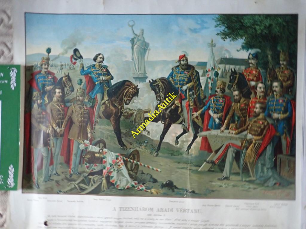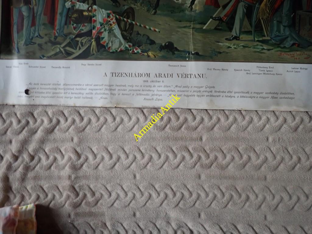 A tizenhárom aradi vértanú. Bellony(i) László (1871-1913) festménye után készült kromolitográfia, a papír szélei sérültek, a kép teljesen ép. Jelzett „Kiadó tulajdonos : Székely Aladár könyv és képkiadó Budapest VIII Klauzál-utcza” OLYMPUS DIGITAL CAMERA OLYMPUS DIGITAL CAMERA OLYMPUS DIGITAL CAMERA Érdekel