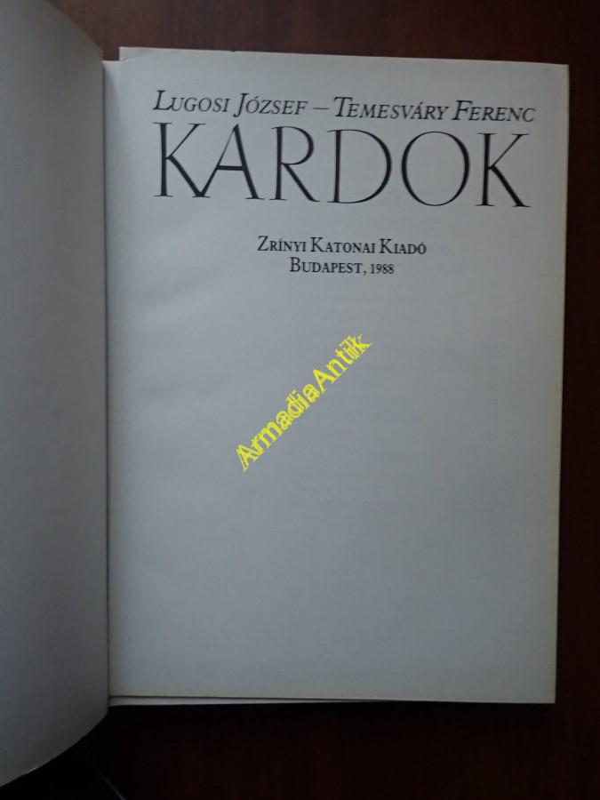 LUGOSI JÓZSEF TEMESVÁRY FERENC: KARDOK, Zrínyi Katonai Kiadó 1988. A képeken látható, szép állapotban.