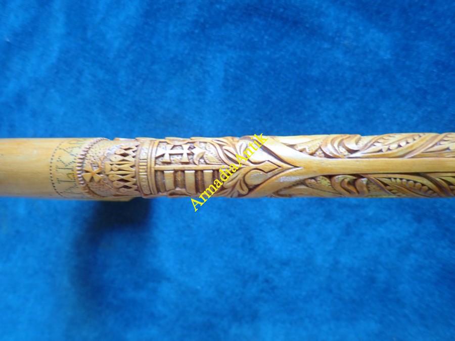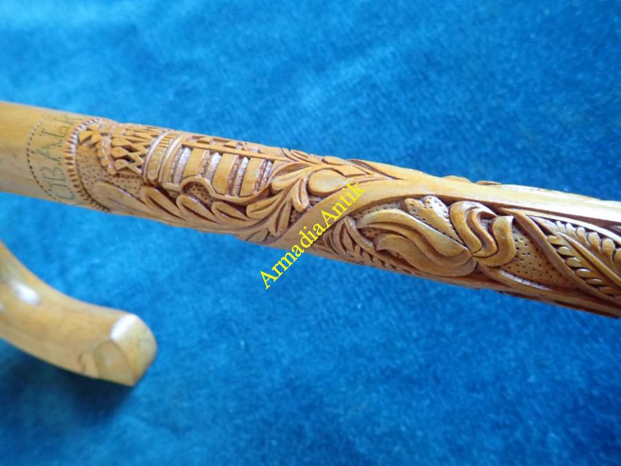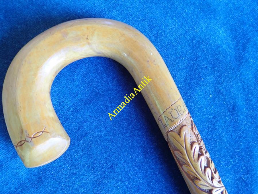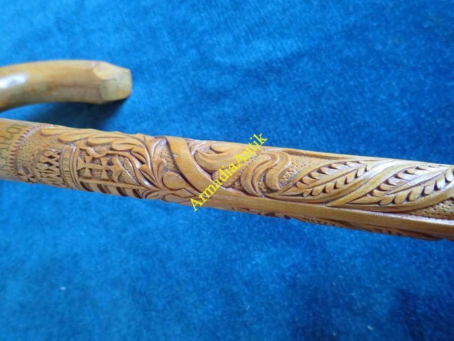 Művészi szinten faragott, Szentkoronás magyar címeres (görbe) bot, a képeken látható top állapotban, tulajdonosi felirattal.