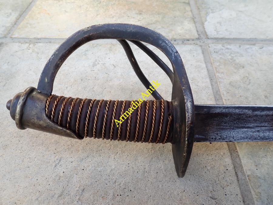 A korszak elit alakulatának számító, lovasított gránátosok szablyája, a 19. sz d. elejéről. Tok nélkül, a képeken látható, korának megfelelő állapotban. Kosarán beütött jelzés.