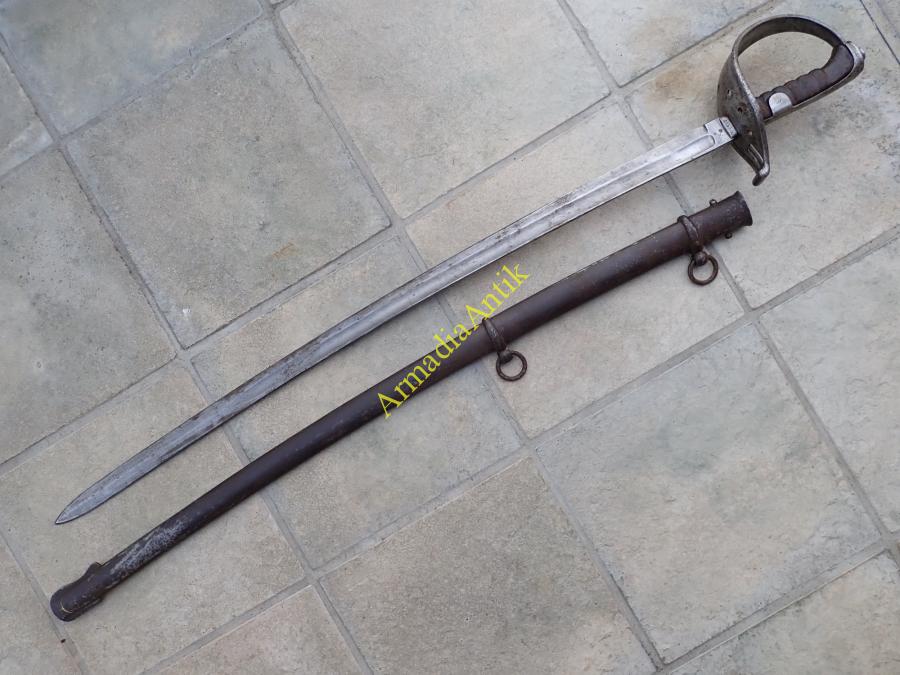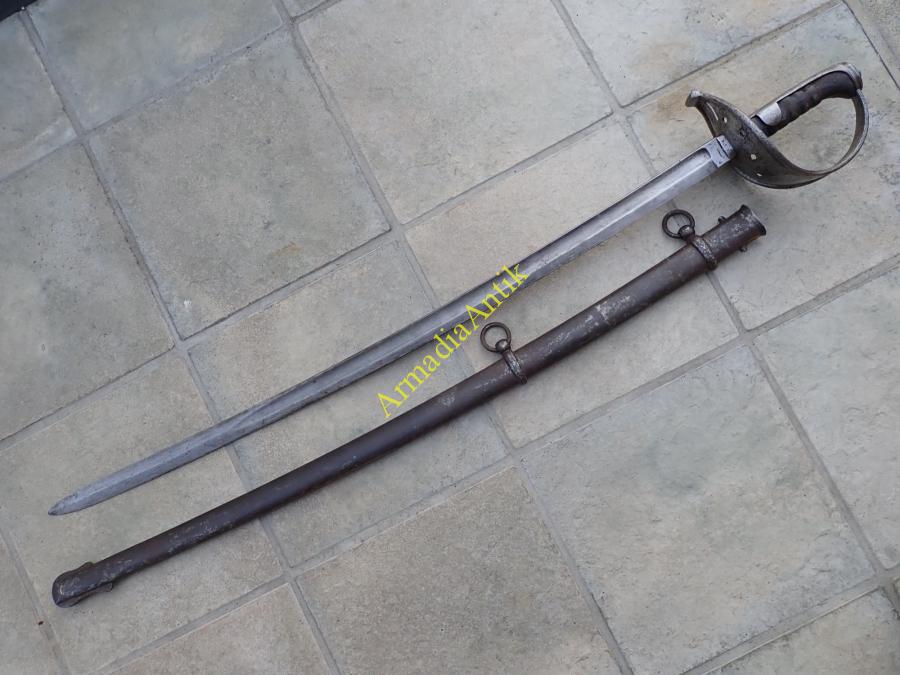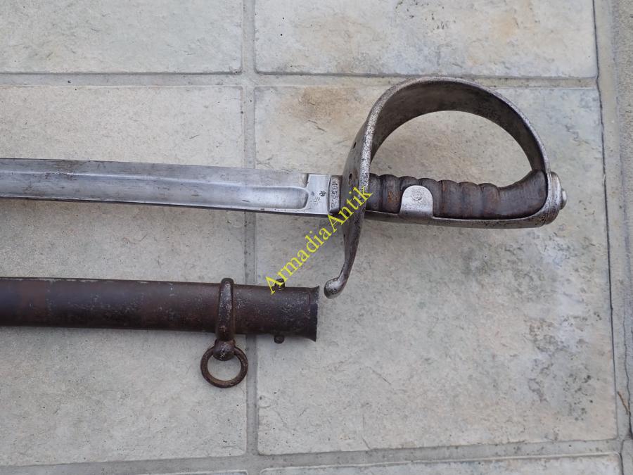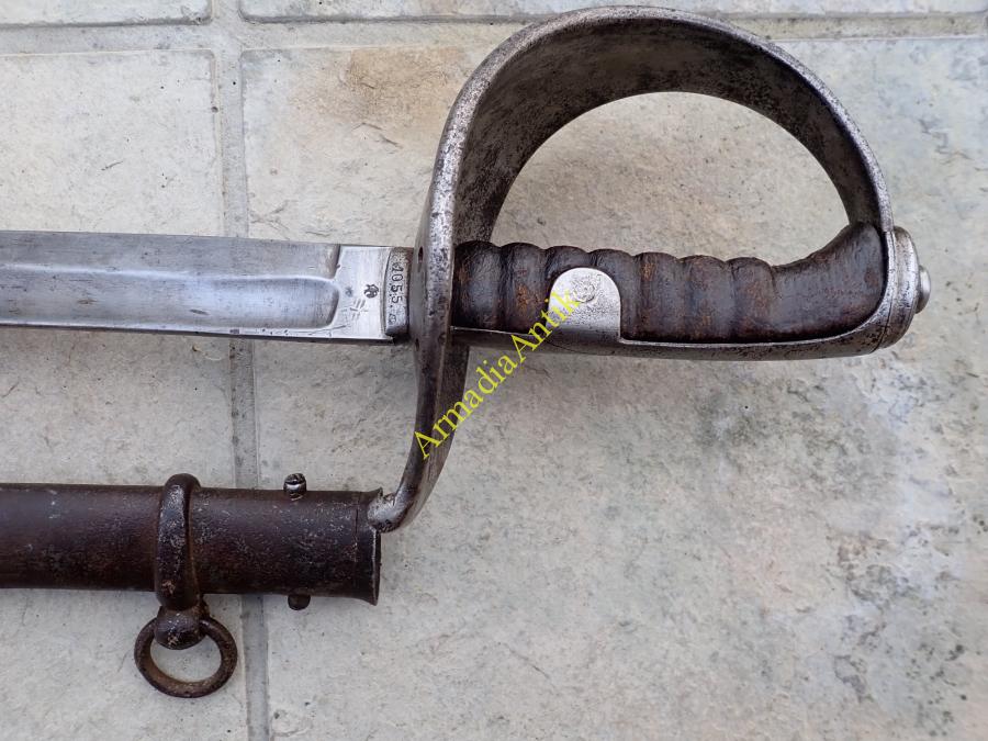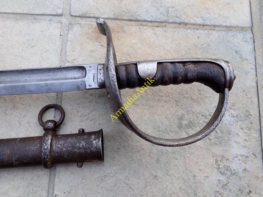 Ritka előfordulású, M 1858 lovassági, legénységi szablya/kard. JURMANN gyártóbélyeges, császári sasos átvevő és az M 1858-as legénységi kardokon ritka csapatjelzéssel. 4. T.D. (4.Train Division)