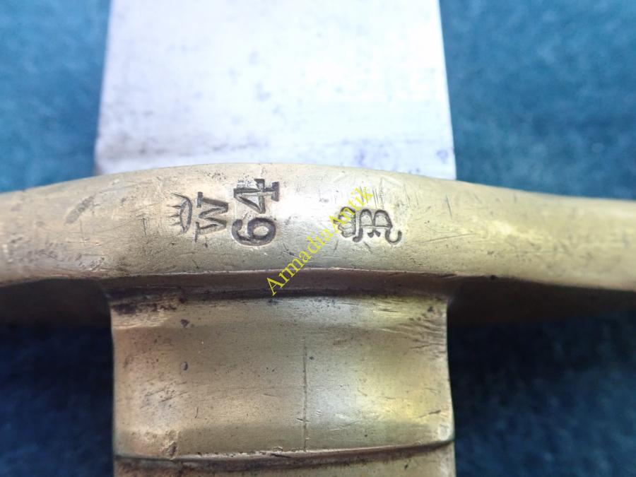 Porosz M 1864 gyalogsági kard, tok nélkül, a képeken látható szép állapotban. Szép kincstári átvevőbélyegekkel, gyártási évvel (18)64 és alakulat és fegyverszámmal. Lásd a képeket!