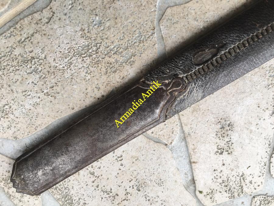 Török tiszti szablya 19. sz d. közepe. Török félhold, csillag, klasszikus, drótvarrásos, bőrözött fa tok, extra profilú, “lépcsős” hátú fokéles penge.