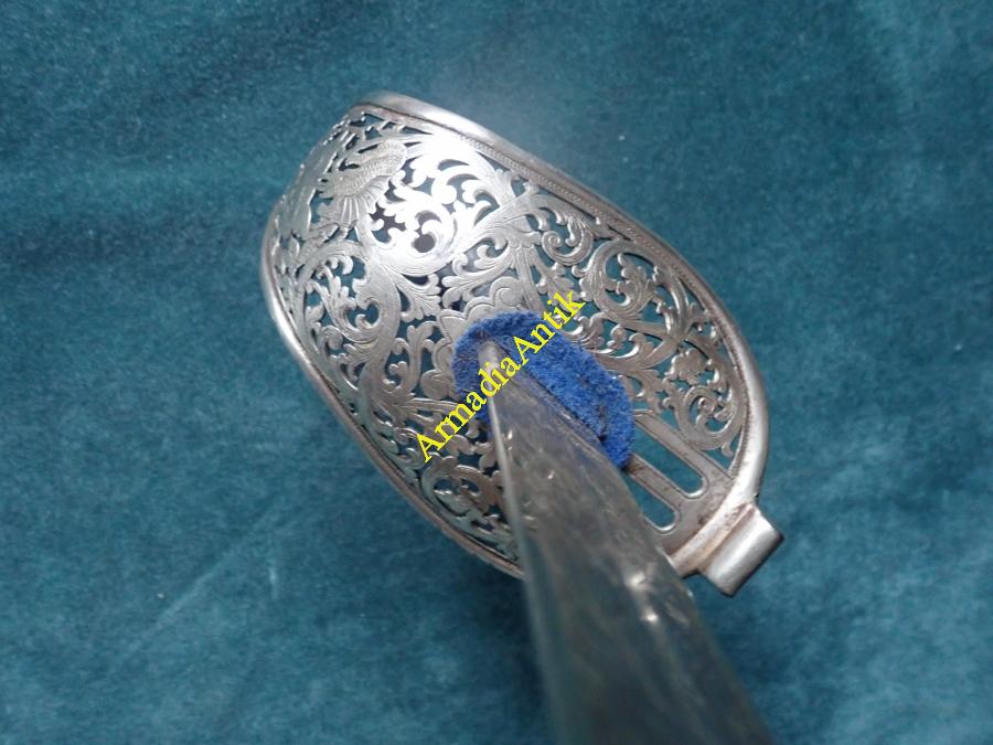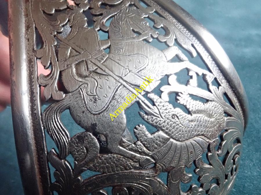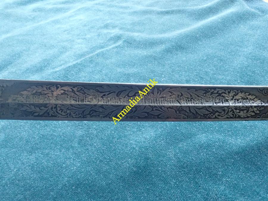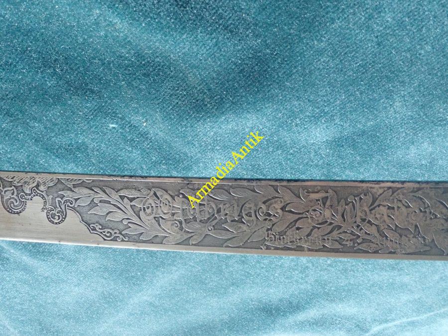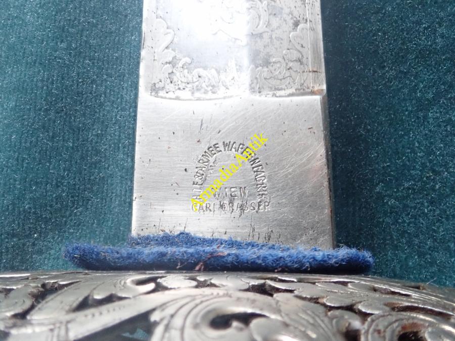 A KuK 11. Császár Dragonyos ezred Szt. György kosaras, jubileumi emlékkardja. A pengén maratott gót betűs felirat.